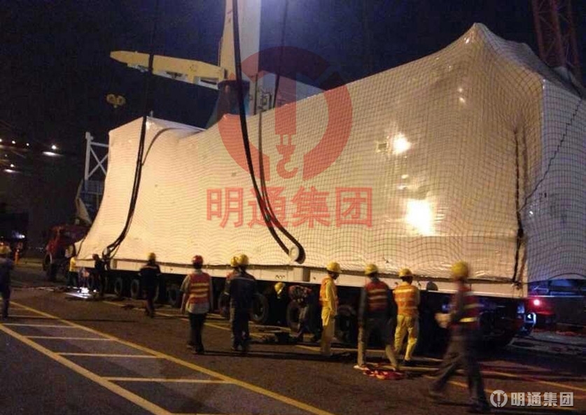 2014年4月的一天,廣州龍穴島上某船廠迎來一位“重量級嘉賓”——1臺重155噸大型發(fā)電機(jī)組,經(jīng)北京明通共達(dá)運(yùn)輸公司“梳妝打扮”,并在眾多明通專業(yè)人士簇?fù)硐?,穩(wěn)穩(wěn)地步入工廠大門。