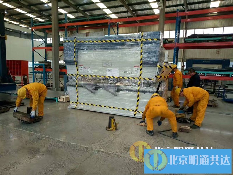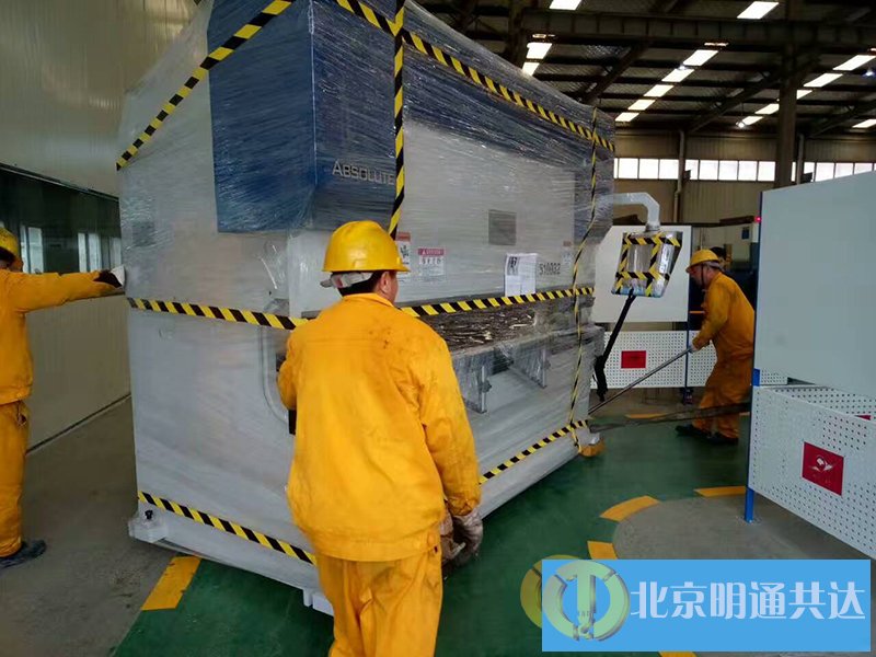 項目簡述:北京明通2017年3月承接了某化學公司的20多噸數(shù)控折彎機的吊裝、卸車、移位等工作。作業(yè)內(nèi)容分為以下幾個特點:(1)設(shè)備保護方面。作業(yè)前需要對設(shè)備做特別防護,數(shù)控折彎機滑塊部分是一個活動部分,作業(yè)前需要對其進行固定,用軟紙包裝的小木方卡在滑塊與工作臺中間,防止對機器的損壞;其次,數(shù)控折彎機有塑料透明視窗,這是極易損壞的部分,需要加纏繞膜和珍珠棉進行保護,防止作業(yè)過程中對其的摩擦損壞。