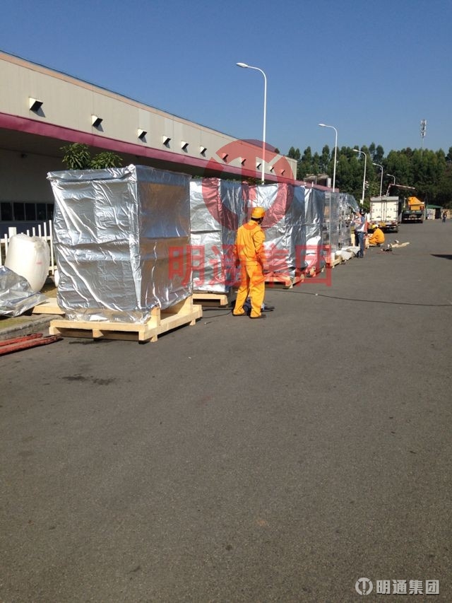 例如,該批設(shè)備的運行線路,是要求先通過汽車轉(zhuǎn)運到香港后、再行裝柜出口的——所以“蘿崗明通包裝”不僅高度重視木箱質(zhì)量,而且從嚴提高了質(zhì)量標準,設(shè)計制作的木箱底座都是便利于“四叉”的,方便設(shè)備貨品的中途裝卸。